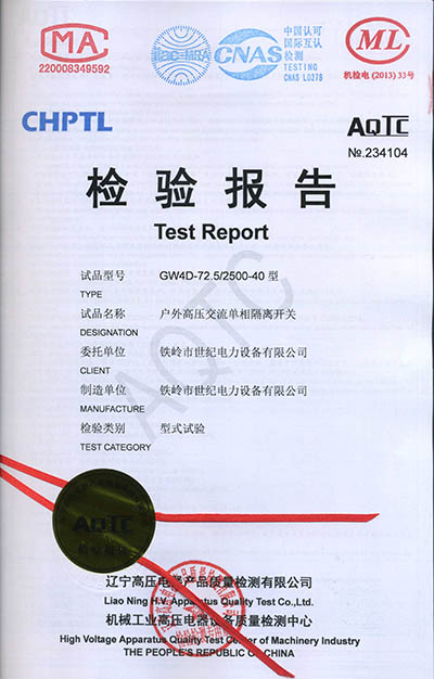 戶外高壓交流隔離開(kāi)關(guān)檢驗(yàn)報(bào)告