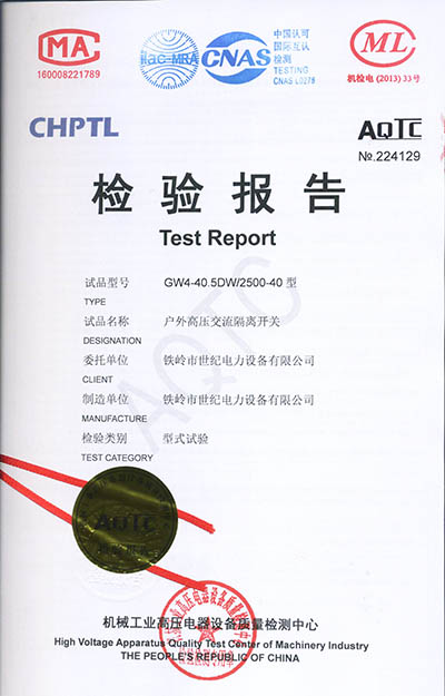 戶外高壓交流隔離開關(guān)檢驗報告