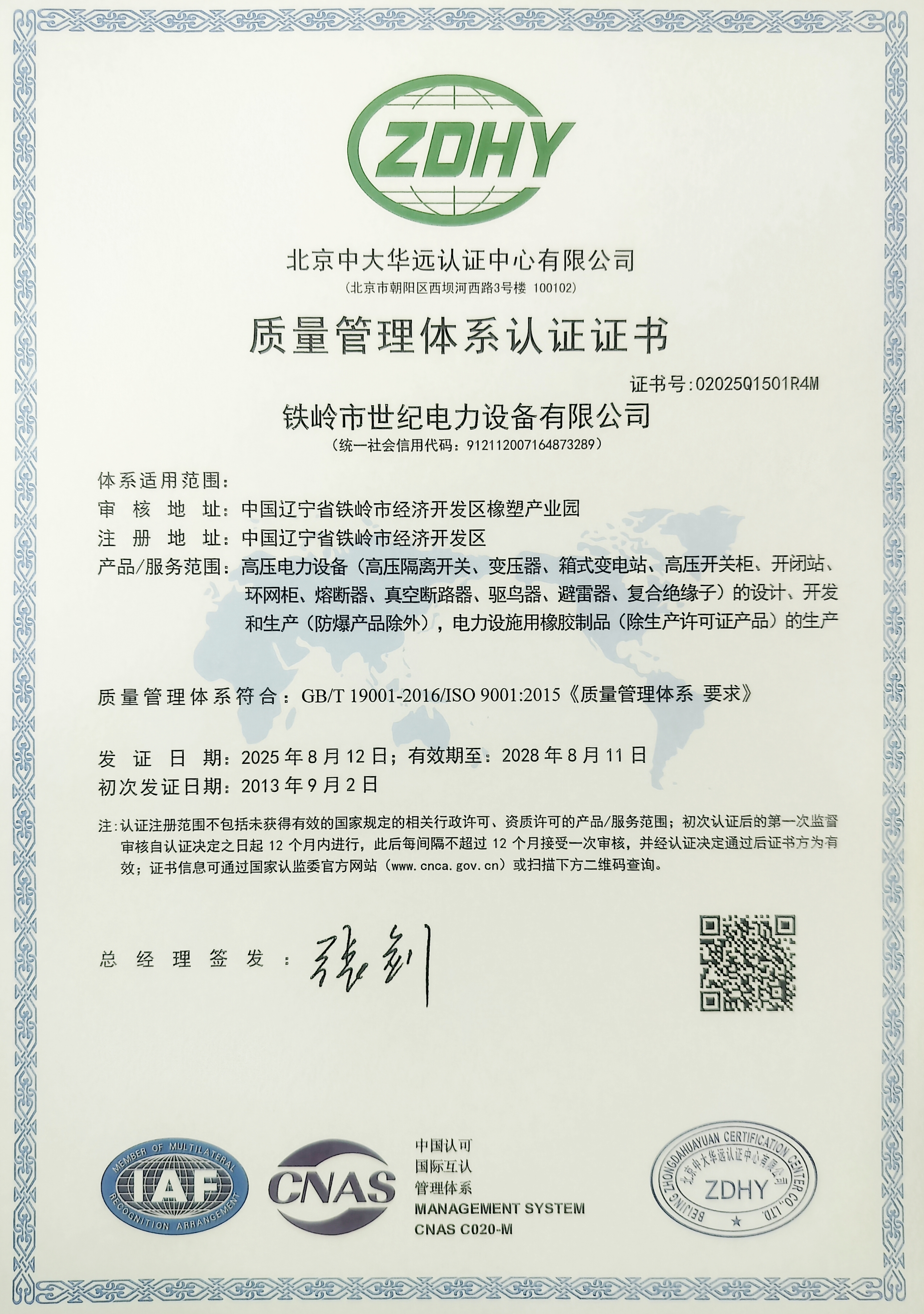 質(zhì)量管理體系認證證書