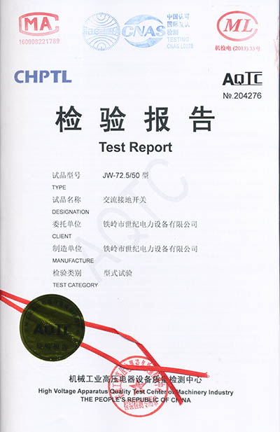 交流接地開關(guān)檢驗報告