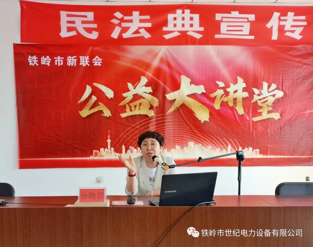 2022年5月27日下午,遼寧正業(yè)律師事務(wù)所主任、一級律師、鐵嶺市新聯(lián)會會長孫曉巖在鐵嶺市世紀(jì)電力設(shè)備有限公司開展了《民法典》普法大講堂活動,圍繞與職工切身利益緊密相關(guān)的法律知識,對新頒布的《民法典》內(nèi)容進(jìn)行了深刻的剖析解讀。宣講中,孫會長從《民法典》的立法歷程、重要意義、主要亮點(diǎn)三個方面,深入闡述了《民法典》的出臺給百姓日常生活帶來的影響和變化。并且通過案例分析重點(diǎn)講述了《民法典》中的一些亮點(diǎn)條款,如老年人監(jiān)護(hù)權(quán)、婚姻家庭、子女贍養(yǎng)、個人信息和網(wǎng)絡(luò)財產(chǎn)保護(hù)等日常生活中涉及大家切身利益的部分,讓與會職工對《民法典》有了更深的理解和準(zhǔn)確把握。宣講中,孫會長與職工們積極互動、答疑解惑,宣講氛圍濃厚,讓職工們在耳濡目染中加深了對民法知識的了解和認(rèn)知,也增強(qiáng)了大家拿起法律武器保護(hù)自身權(quán)益的信心和底氣。